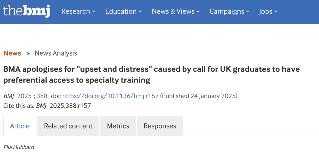 Because if the real issue is too many applicants for too few training posts, the answer isn’t to rank people by birthplace or university. That doesn’t fix the bottleneck; it just shifts the frustration onto a different group while deepening internal resentment. A union should never respond to systemic pressures by turning its members against each other.